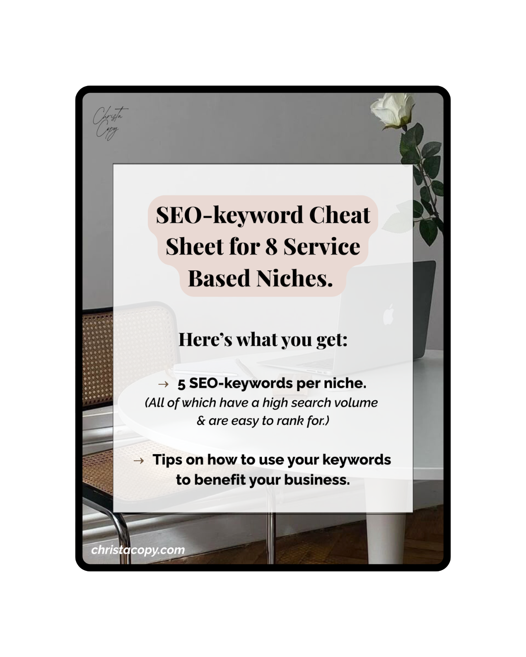 That’s exactly why I created this freebie for you! I hand picked 5 of the best SEO-keywords for 8 different service based niche. I also included a list of tips on how you can use them to grow and benefit your business. So go on and download it below!